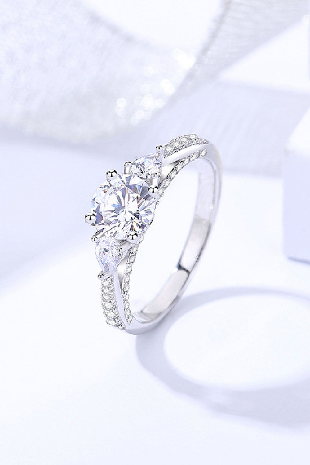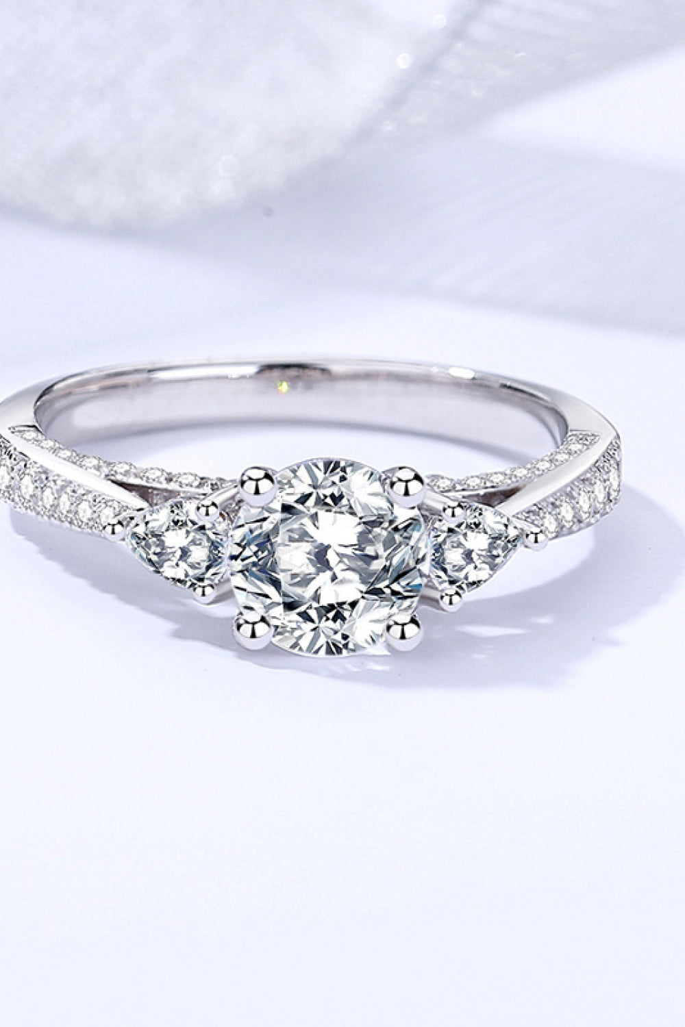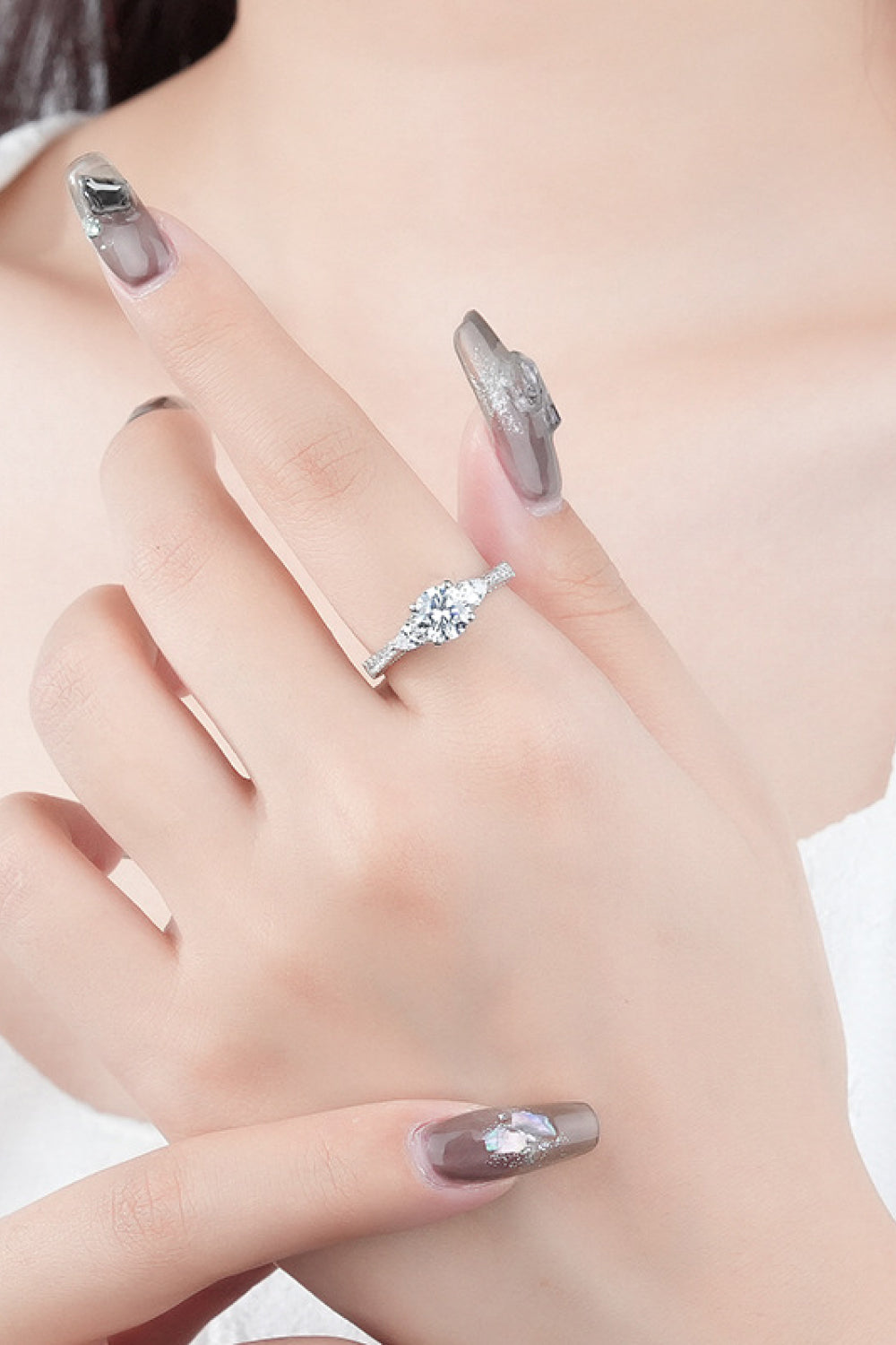 1 Carat Moissanite 4-Prong Side Stone Ring